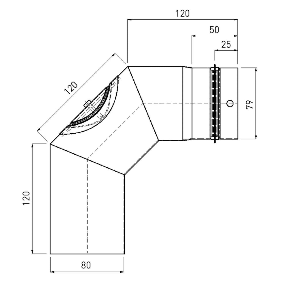 Черна тръба на фурна, подходяща за печки на пелети с техническа рисунка - Лък 90 ° е на склад и ще бъде изпратен веднага щом бъде отново наличен
