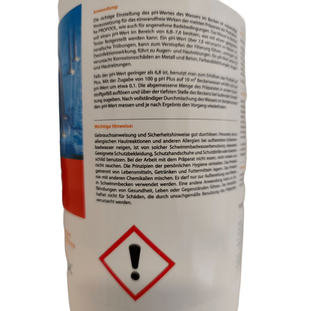 Please always follow the instructions for use and never mix pH plus granules with other chemicals. This product is intended exclusively for water treatment in swimming pools, and the manufacturer assumes no liability for damage caused by improper use.