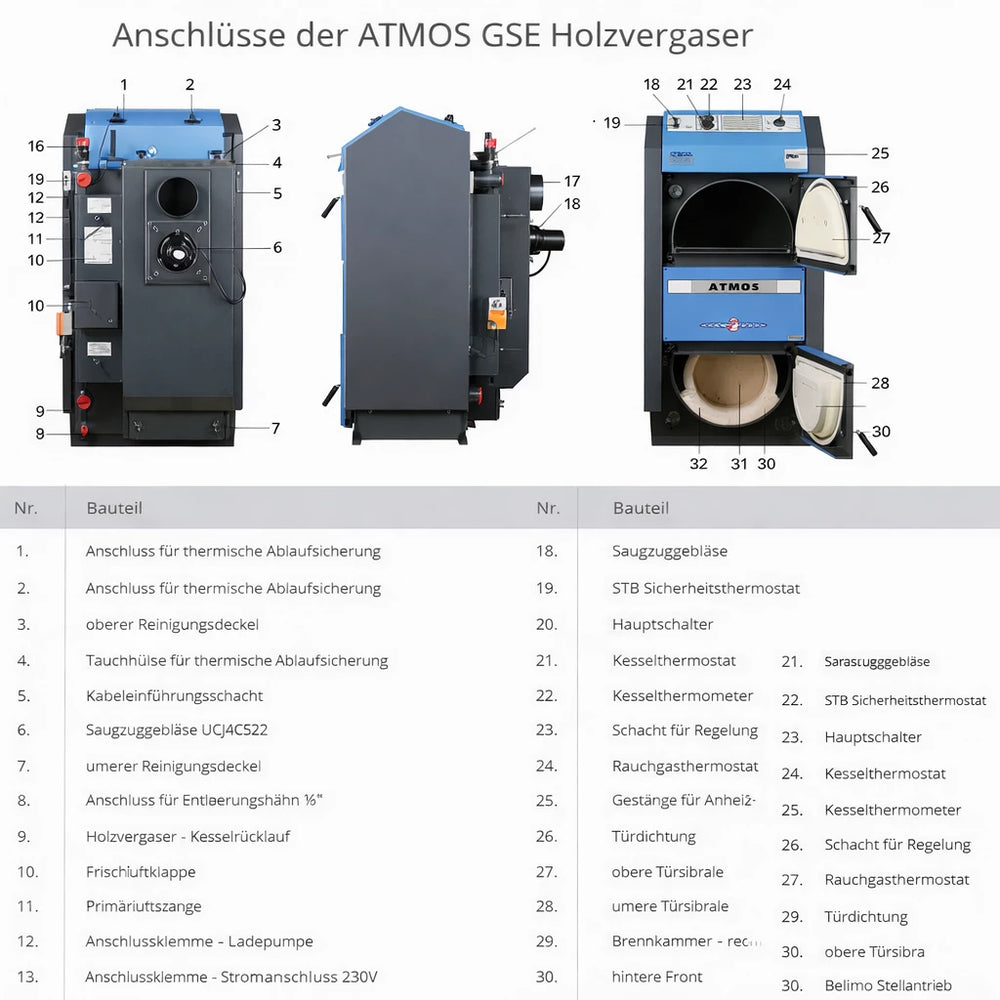 Gracias a la moderna tecnología de gasificación de madera, el combustible se utiliza de forma especialmente eficiente. El ATMOS DC40GSE alcanza altos niveles de eficiencia y cumple con los requisitos de... BImSchV Nivel II. La clase de eficiencia energética es A+. :contentReference[oaicite:3]{index=3}