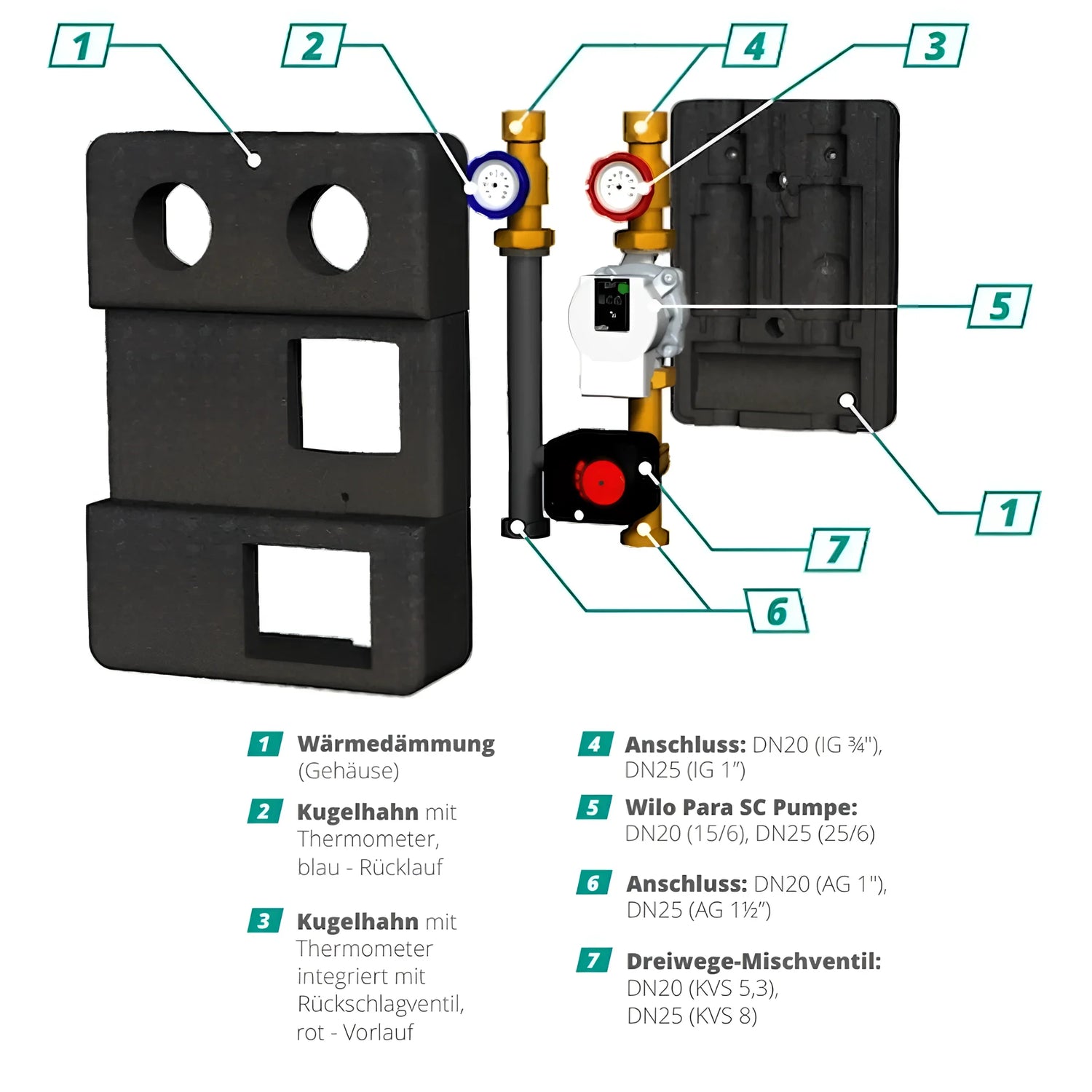 Grupo de bomba Gema DN25 con válvula de mezcla de tres vías