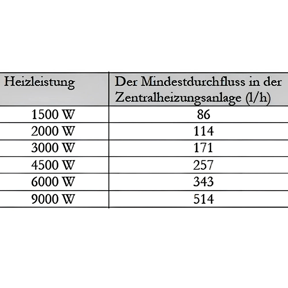 Lo scaldabagno istantaneo per impianti di riscaldamento centralizzato ha possibilità di collegamento precise: i collegamenti di mandata e ritorno misurano 1 1/4" IG, mentre il collegamento per l'elemento riscaldante è su 1 1/2" È progettato per filettature interne. Raggiunge una temperatura di esercizio massima consentita di 90 °C e funziona in sicurezza fino a una pressione di esercizio di 10 bar.