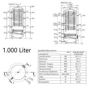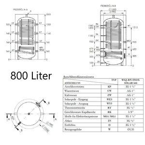 Apkures ūdens bufera tvertne ar karstā ūdens sildīšanu WGJ-BN INOX SOLAR