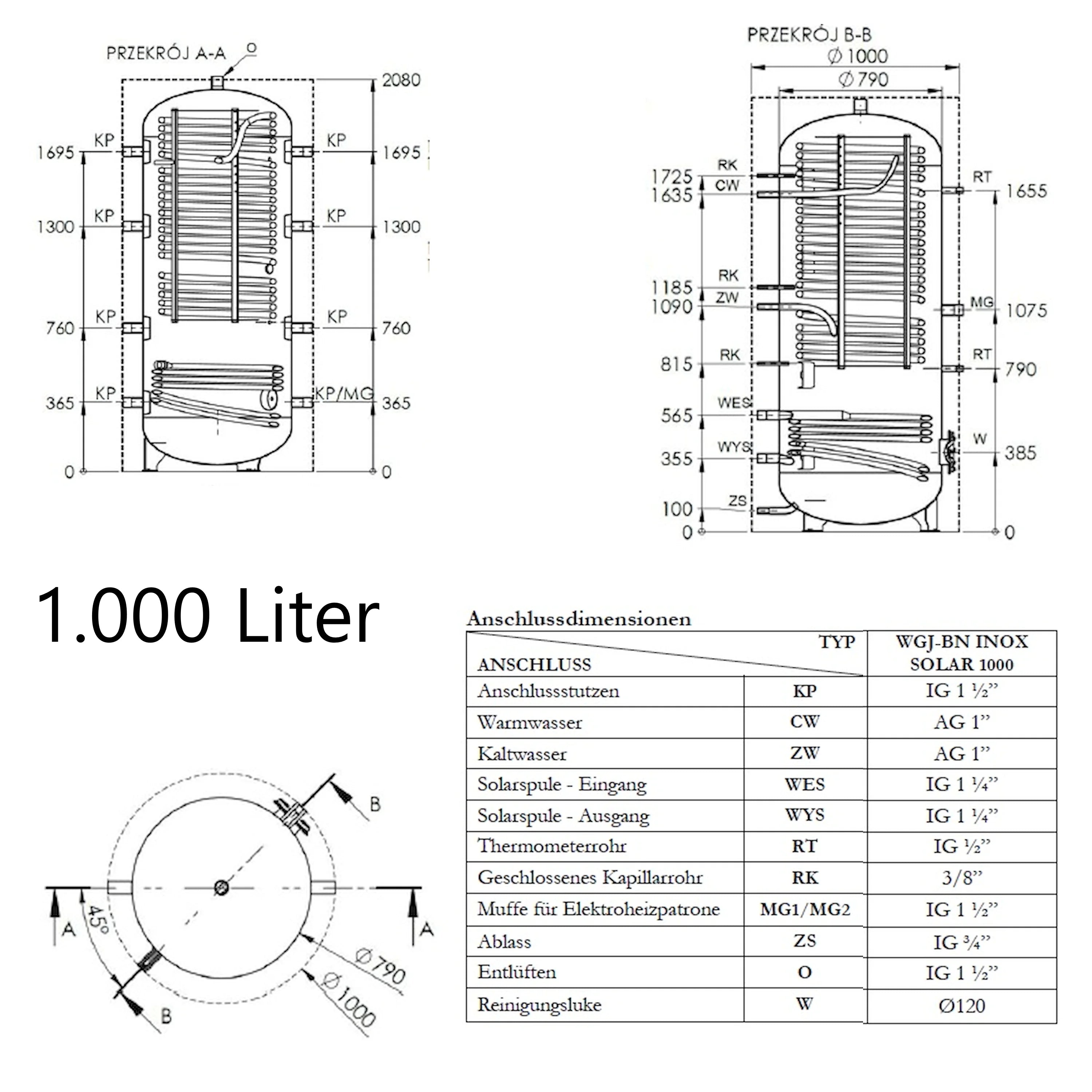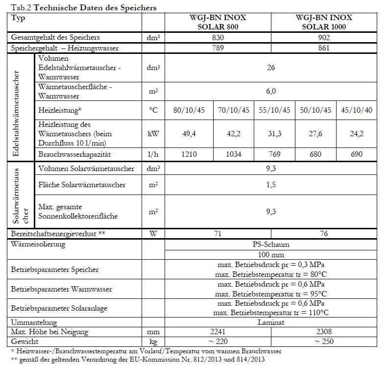 WGJ-BN INOX SOLAR ir kombinēta bufera uzglabāšanas tvertne ūdens un karstā ūdens sildīšanai ar integrētu nerūsējošā tērauda sildīšanas spirāli kā siltummaini. Tā ir paredzēta integrācijai centrālās apkures sistēmās ar katliem, siltumsūkņiem vai saules siltuma izmantošanai, un tā ļauj gan uzkrāt apkures enerģiju, gan nepārtraukti sildīt dzeramo ūdeni.
