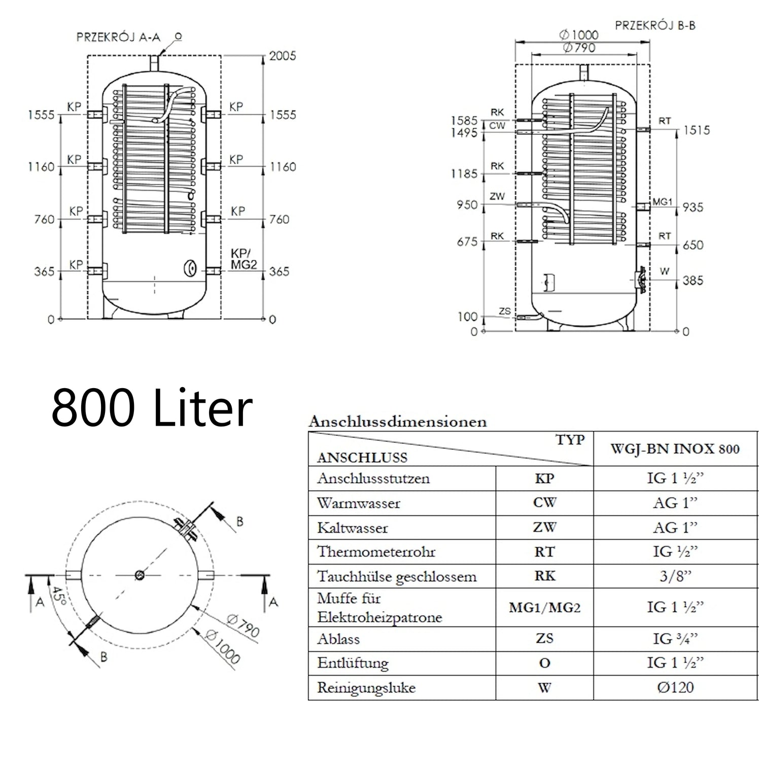 Zasobnik buforowy wody grzewczej z podgrzewaniem ciepłej wody użytkowej WGJ-BN INOX