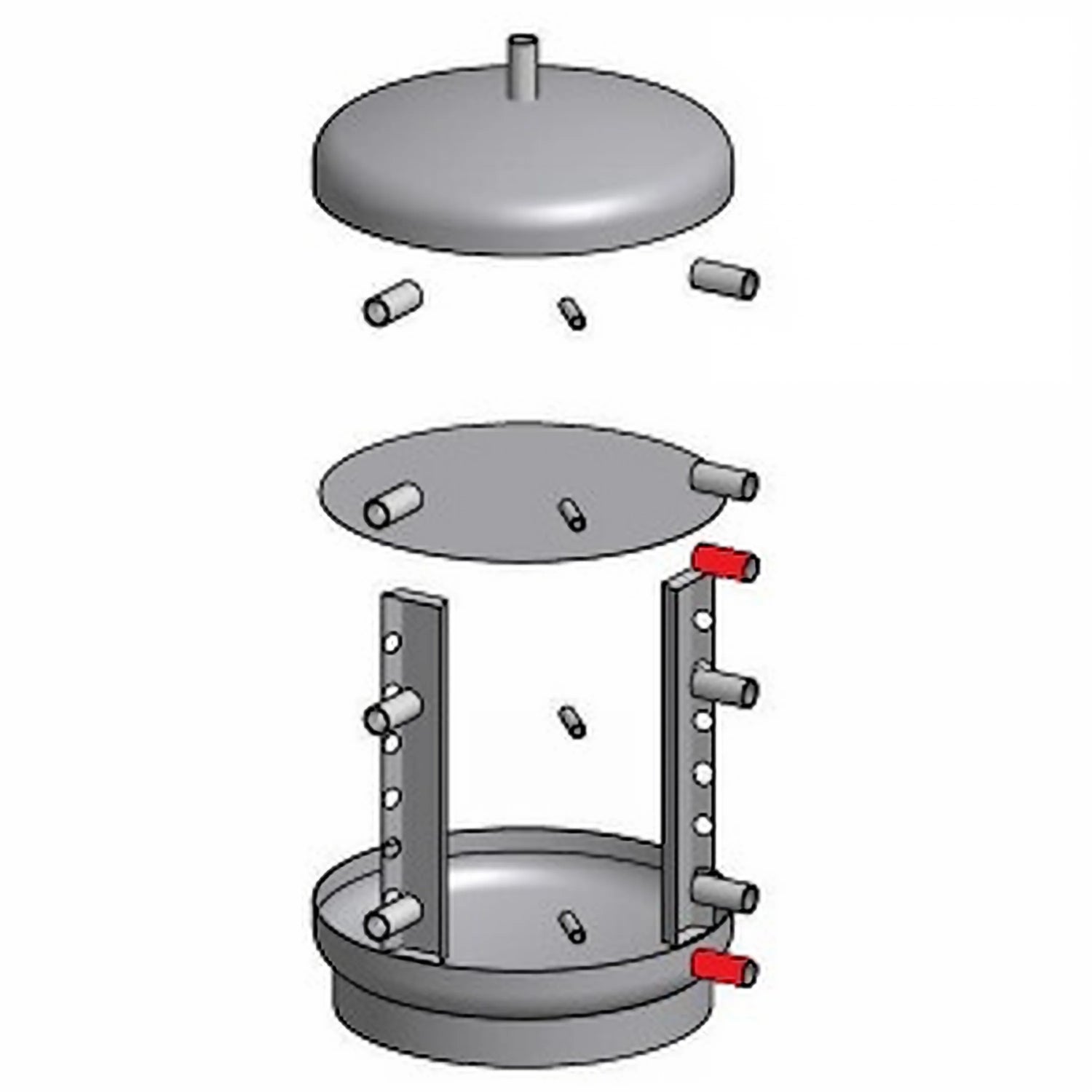 Aby poprawić rozwarstwienie, zintegrowano kanały rozwarstwiające i wspawaną płytę rozwarstwiającą. Tuleje są ułożone pod kątem 90°, co upraszcza instalację i podłączanie wielu zbiorników magazynowych.