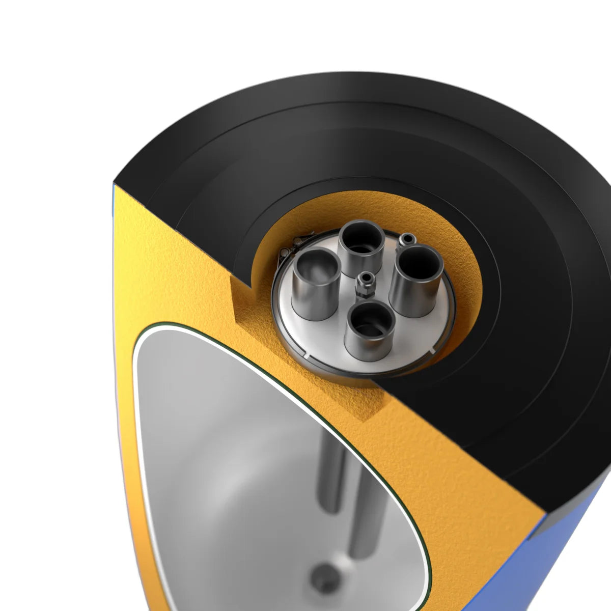 Dzięki pojemności 200 litrów i wadze zaledwie 33 kg, Sunex FISH Carbon S4 oferuje niezrównany stosunek pojemności do wielkości. Centralne rozmieszczenie wszystkich przyłączy na górze pozwala na elastyczne podłączenie do szerokiej gamy systemów grzewczych, nie marnując miejsca.